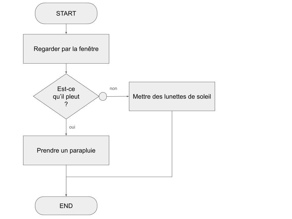 - Oui ➡️ “Prendre un parapluie” (Rectangle – Traitement)